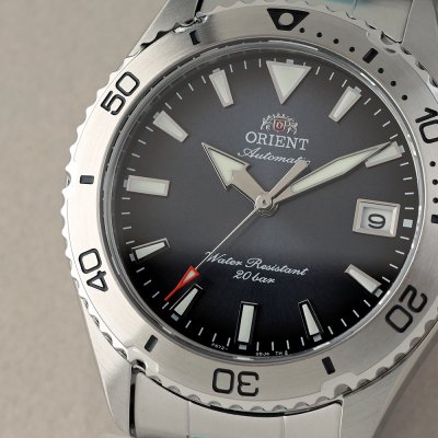 Diese Orient Uhr hat ein Edelstahl Gehäuse mit einem Durchmesser von 39 mm und ist mit einem Armband aus Edelstahl versehen. In der Uhr arbeitet ein Orient Uhrwerk. Das Glas der Uhr besteht aus Sapphir - Glas.