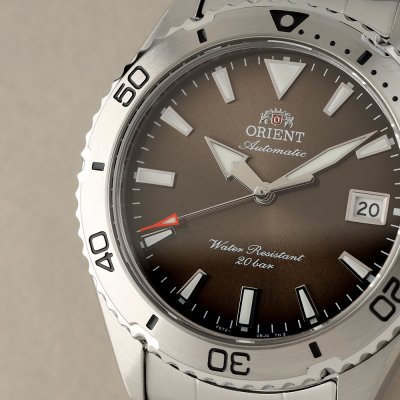 Diese Orient Uhr hat ein Edelstahl Gehäuse mit einem Durchmesser von 39 mm und ist mit einem Armband aus Edelstahl versehen. In der Uhr arbeitet ein Orient Uhrwerk. Das Glas der Uhr besteht aus Sapphir - Glas.