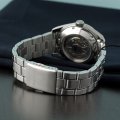 Diese Orient Uhr hat ein Edelstahl Gehäuse mit einem Durchmesser von 38.5 mm und ist mit einem Armband aus Edelstahl versehen. In der Uhr arbeitet ein Seiko Instruments Inc. Uhrwerk. Das Glas der Uhr besteht aus Einfaches reflektionsfreies Saphirglas - Glas.