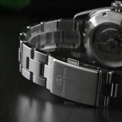 Diese Orient Uhr hat ein Edelstahl Gehäuse mit einem Durchmesser von 38.5 mm und ist mit einem Armband aus Edelstahl versehen. In der Uhr arbeitet ein Seiko Instruments Inc. Uhrwerk. Das Glas der Uhr besteht aus Sapphir - Glas.