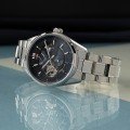 Diese Orient Uhr hat ein Edelstahl Gehäuse mit einem Durchmesser von 41 mm und ist mit einem Armband aus Edelstahl versehen. In der Uhr arbeitet ein Seiko Instruments Inc. Uhrwerk. Das Glas der Uhr besteht aus Einfaches reflektionsfreies Saphirglas - Glas.