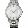 Diese Orient Uhr hat ein Edelstahl Gehäuse mit einem Durchmesser von 40 mm und ist mit einem Armband aus Metall versehen. In der Uhr arbeitet ein Orient Uhrwerk. Das Glas der Uhr besteht aus Sapphir - Glas.