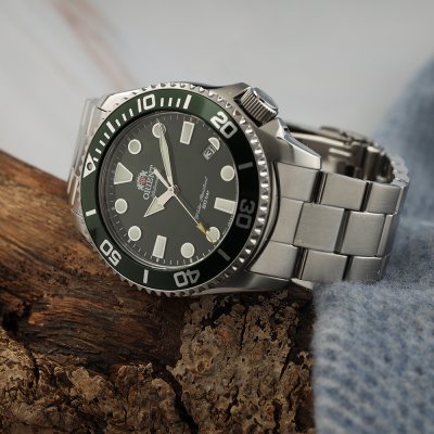Diese Orient Uhr hat ein Edelstahl Gehäuse mit einem Durchmesser von 43.3 mm und ist mit einem Armband aus Edelstahl versehen. In der Uhr arbeitet ein Orient Uhrwerk. Das Glas der Uhr besteht aus Sapphir - Glas.