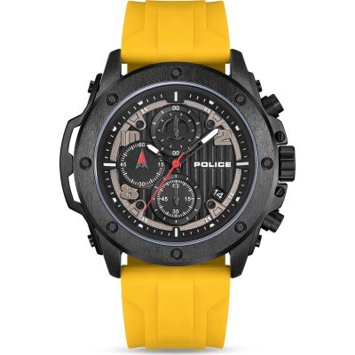 Diese Police Uhr hat ein Metalllegierung Gehäuse mit einem Durchmesser von 50 mm und ist mit einem Armband aus Kautschuk versehen. In der Uhr arbeitet ein Sunon Uhrwerk. Das Glas der Uhr besteht aus Mineral - Glas.