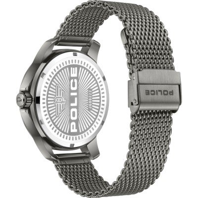 Diese Police Uhr hat ein Edelstahl Gehäuse mit einem Durchmesser von 44 mm und ist mit einem Armband aus Edelstahl versehen. In der Uhr arbeitet ein Miyota Uhrwerk. Das Glas der Uhr besteht aus Mineral - Glas.