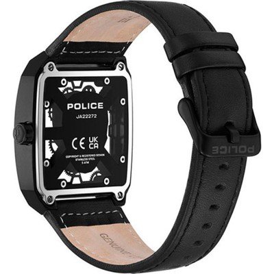 Diese Police Uhr hat ein Edelstahl Gehäuse mit einem Durchmesser von 39 mm und ist mit einem Armband aus Leder versehen. In der Uhr arbeitet ein Miyota Uhrwerk. Das Glas der Uhr besteht aus Mineral - Glas.