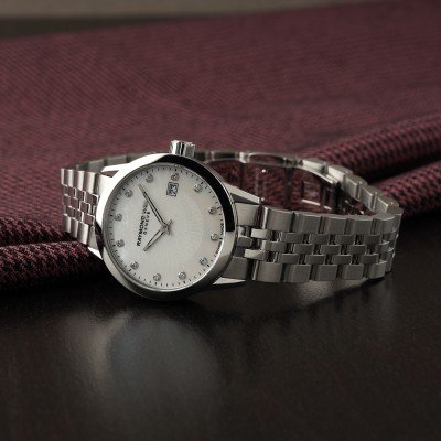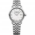Diese Raymond Weil Uhr hat ein Edelstahl Gehäuse mit einem Durchmesser von 29 mm und ist mit einem Armband aus Edelstahl versehen. In der Uhr arbeitet ein ETA Uhrwerk. Das Glas der Uhr besteht aus Sapphir - Glas.