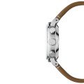 Diese Raymond Weil Uhr hat ein Edelstahl Gehäuse mit einem Durchmesser von 39.5 mm und ist mit einem Armband aus Leder versehen. In der Uhr arbeitet ein Sellita Uhrwerk. Das Glas der Uhr besteht aus Sapphir - Glas.
