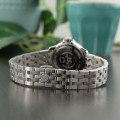 Diese Raymond Weil Uhr hat ein Edelstahl Gehäuse mit einem Durchmesser von 30 mm und ist mit einem Armband aus Edelstahl versehen. In der Uhr arbeitet ein ETA Uhrwerk. Das Glas der Uhr besteht aus Sapphir - Glas.