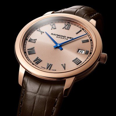 Diese Raymond Weil Uhr hat ein Edelstahl Gehäuse mit einem Durchmesser von 29 mm und ist mit einem Armband aus Leder versehen. In der Uhr arbeitet ein ETA Uhrwerk. Das Glas der Uhr besteht aus Sapphir - Glas.