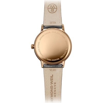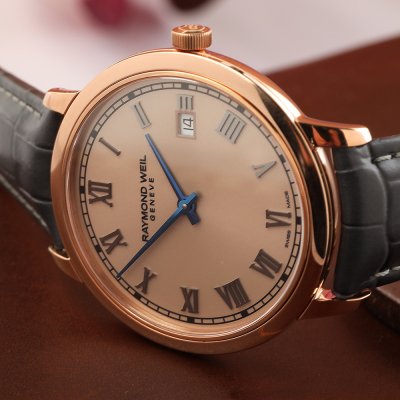 Diese Raymond Weil Uhr hat ein Edelstahl Gehäuse mit einem Durchmesser von 39 mm und ist mit einem Armband aus Leder versehen. In der Uhr arbeitet ein ETA Uhrwerk. Das Glas der Uhr besteht aus Sapphir - Glas.