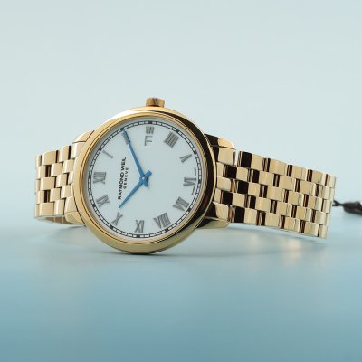 Diese Raymond Weil Uhr hat ein Edelstahl Gehäuse mit einem Durchmesser von 39 mm und ist mit einem Armband aus Edelstahl versehen. In der Uhr arbeitet ein ETA Uhrwerk. Das Glas der Uhr besteht aus Sapphir - Glas.