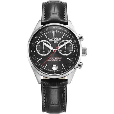 Diese Roamer Uhr hat ein Edelstahl Gehäuse mit einem Durchmesser von 41.5 mm und ist mit einem Armband aus Edelstahl versehen. In der Uhr arbeitet ein Ronda Uhrwerk. Das Glas der Uhr besteht aus Einfaches reflektionsfreies Saphirglas - Glas.