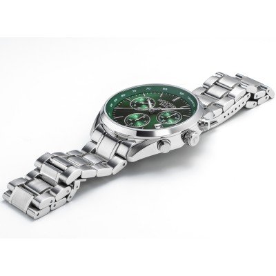 Diese Roamer Uhr hat ein Edelstahl Gehäuse mit einem Durchmesser von 42 mm und ist mit einem Armband aus Edelstahl versehen. In der Uhr arbeitet ein Ronda Uhrwerk. Das Glas der Uhr besteht aus Sapphir - Glas.