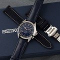 Diese Seiko Uhr hat ein Edelstahl Gehäuse mit einem Durchmesser von 39.5 mm und ist mit einem Armband aus Leder versehen. In der Uhr arbeitet ein Seiko Instruments Inc. Uhrwerk. Das Glas der Uhr besteht aus Einfaches reflektionsfreies Saphirglas - Glas.