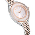 Diese Swarovski Uhr hat ein Edelstahl Gehäuse mit einem Durchmesser von 35.5 mm und ist mit einem Armband aus Edelstahl versehen. In der Uhr arbeitet ein Ronda Uhrwerk. Das Glas der Uhr besteht aus Mineral - Glas.