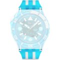Dieses Swatch Uhrarmband ist aus silikon gefertigt und wird mit stahlstifte an der Uhr befestigt. Das Band hat eine Breite von 21 mm und wird mit einer dornschließe geschlossen. Das Uhrenarmband hat keine gerade Halterung, was bedeutet, dass dieses Band nur für die unten aufgeführten Uhren geeignet ist.