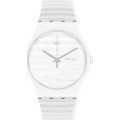 Dieses Swatch Uhrarmband ist aus silikon gefertigt und wird mit stahlstifte an der Uhr befestigt. Das Band hat eine Breite von 19.7 mm und wird mit einer dornschließe geschlossen. Das Uhrenarmband hat keine gerade Halterung, was bedeutet, dass dieses Band nur für die unten aufgeführten Uhren geeignet ist.