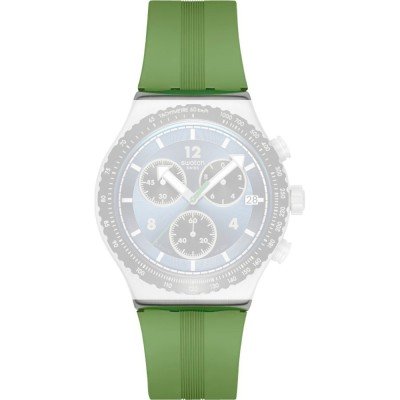 Dieses Swatch Uhrarmband ist aus silikon gefertigt und wird mit stahlstifte an der Uhr befestigt. Das Band hat eine Breite von 21 mm und wird mit einer dornschließe geschlossen. Das Uhrenarmband hat keine gerade Halterung, was bedeutet, dass dieses Band nur für die unten aufgeführten Uhren geeignet ist.