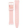 Dieses Swatch Uhrarmband ist aus silikon gefertigt und wird mit stahlstifte an der Uhr befestigt. Das Band hat eine Breite von 17 mm und wird mit einer dornschließe geschlossen. Das Uhrenarmband hat keine gerade Halterung, was bedeutet, dass dieses Band nur für die unten aufgeführten Uhren geeignet ist.