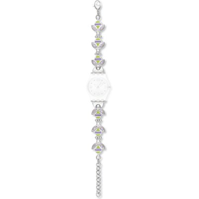 Dieses Swatch Uhrarmband ist aus edelstahl gefertigt und wird mit stahlstifte an der Uhr befestigt. Das Band hat eine Breite von 12 mm und wird mit einer hakenschließe geschlossen. Das Uhrenarmband hat keine gerade Halterung, was bedeutet, dass dieses Band nur für die unten aufgeführten Uhren geeignet ist.