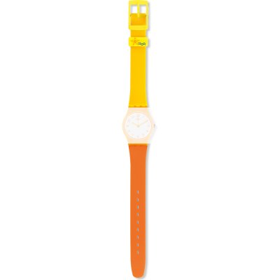 Dieses Swatch Uhrarmband ist aus kunststoff/Resin gefertigt und wird mit stahlstifte an der Uhr befestigt. Das Band hat eine Breite von 12 mm und wird mit einer dornschließe geschlossen. Das Uhrenarmband hat keine gerade Halterung, was bedeutet, dass dieses Band nur für die unten aufgeführten Uhren geeignet ist.