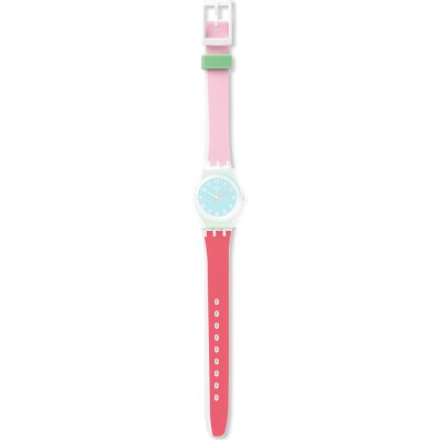 Dieses Swatch Uhrarmband ist aus silikon gefertigt und wird mit stahlstifte an der Uhr befestigt. Das Band hat eine Breite von 12 mm und wird mit einer dornschließe geschlossen. Das Uhrenarmband hat keine gerade Halterung, was bedeutet, dass dieses Band nur für die unten aufgeführten Uhren geeignet ist.