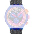 Dieses Swatch Uhrarmband ist aus bio-Kunststoff gefertigt und wird mit stahlstifte an der Uhr befestigt. Das Band hat eine Breite von 19.7 mm und wird mit einer dornschließe geschlossen. Das Uhrenarmband hat keine gerade Halterung, was bedeutet, dass dieses Band nur für die unten aufgeführten Uhren geeignet ist.