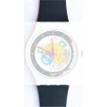 Dieses Swatch Uhrarmband ist aus silikon gefertigt und wird mit stahlstifte an der Uhr befestigt. Das Band hat eine Breite von 19.7 mm und wird mit einer dornschließe geschlossen. Das Uhrenarmband hat keine gerade Halterung, was bedeutet, dass dieses Band nur für die unten aufgeführten Uhren geeignet ist.