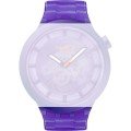 Dieses Swatch Uhrarmband ist aus bio-Kunststoff gefertigt und wird mit stahlstifte an der Uhr befestigt. Das Band hat eine Breite von 19.7 mm und wird mit einer schmetterlingsschließe mit druckknöpfen geschlossen. Das Uhrenarmband hat keine gerade Halterung, was bedeutet, dass dieses Band nur für die unten aufgeführten Uhren geeignet ist.