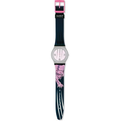 Dieses Swatch Uhrarmband ist aus kunststoff/Resin gefertigt und wird mit stahlstifte an der Uhr befestigt. Das Band hat eine Breite von 17 mm und wird mit einer dornschließe geschlossen. Das Uhrenarmband hat keine gerade Halterung, was bedeutet, dass dieses Band nur für die unten aufgeführten Uhren geeignet ist.