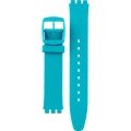 Dieses Swatch Uhrarmband ist aus silikon gefertigt und wird mit stahlstifte an der Uhr befestigt. Das Band hat eine Breite von 14.6 mm und wird mit einer dornschließe geschlossen. Das Uhrenarmband hat keine gerade Halterung, was bedeutet, dass dieses Band nur für die unten aufgeführten Uhren geeignet ist.