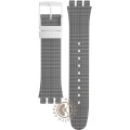 Dieses Swatch Uhrarmband ist aus silikon gefertigt und wird mit stahlstifte an der Uhr befestigt. Das Band hat eine Breite von 19.7 mm und wird mit einer dornschließe geschlossen. Das Uhrenarmband hat keine gerade Halterung, was bedeutet, dass dieses Band nur für die unten aufgeführten Uhren geeignet ist.