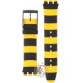 Dieses Swatch Uhrarmband ist aus silikon gefertigt und wird mit stahlstifte an der Uhr befestigt. Das Band hat eine Breite von 19.7 mm und wird mit einer dornschließe geschlossen. Das Uhrenarmband hat keine gerade Halterung, was bedeutet, dass dieses Band nur für die unten aufgeführten Uhren geeignet ist.