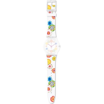 Dieses Swatch Uhrarmband ist aus silikon gefertigt und wird mit stahlstifte an der Uhr befestigt. Das Band hat eine Breite von 19.7 mm und wird mit einer dornschließe geschlossen. Das Uhrenarmband hat keine gerade Halterung, was bedeutet, dass dieses Band nur für die unten aufgeführten Uhren geeignet ist.