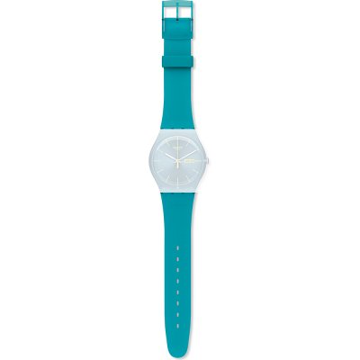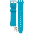 Dieses Swatch Uhrarmband ist aus silikon gefertigt und wird mit stahlstifte an der Uhr befestigt. Das Band hat eine Breite von 19.7 mm und wird mit einer dornschließe geschlossen. Das Uhrenarmband hat keine gerade Halterung, was bedeutet, dass dieses Band nur für die unten aufgeführten Uhren geeignet ist.