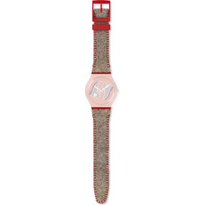 Dieses Swatch Uhrarmband ist aus textil auf Leder gefertigt und wird mit stahlstifte an der Uhr befestigt. Das Band hat eine Breite von 19.7 mm und wird mit einer dornschließe geschlossen. Das Uhrenarmband hat keine gerade Halterung, was bedeutet, dass dieses Band nur für die unten aufgeführten Uhren geeignet ist.