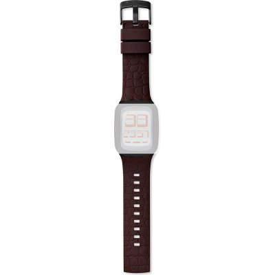 Dieses Swatch Uhrarmband ist aus silikon gefertigt und wird mit stahlstifte an der Uhr befestigt. Das Band hat eine Breite von 28 mm und wird mit einer dornschließe geschlossen. Das Uhrenarmband hat keine gerade Halterung, was bedeutet, dass dieses Band nur für die unten aufgeführten Uhren geeignet ist.