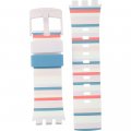 Dieses Swatch Uhrarmband ist aus silikon gefertigt und wird mit stahlstifte an der Uhr befestigt. Das Band hat eine Breite von 28 mm und wird mit einer dornschließe geschlossen. Das Uhrenarmband hat keine gerade Halterung, was bedeutet, dass dieses Band nur für die unten aufgeführten Uhren geeignet ist.