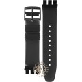Dieses Swatch Uhrarmband ist aus kunststoff/Resin gefertigt und wird mit stahlstifte an der Uhr befestigt. Das Band hat eine Breite von 21.3 mm und wird mit einer dornschließe geschlossen. Das Uhrenarmband hat keine gerade Halterung, was bedeutet, dass dieses Band nur für die unten aufgeführten Uhren geeignet ist.