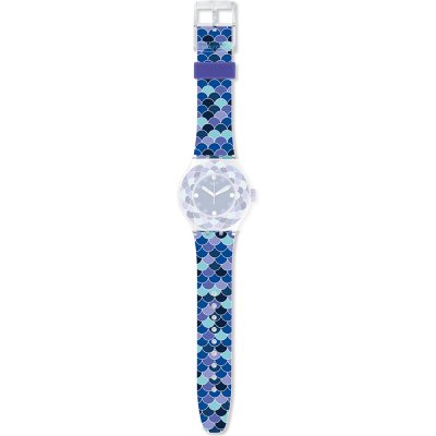 Dieses Swatch Uhrarmband ist aus silikon gefertigt und wird mit stahlstifte an der Uhr befestigt. Das Band hat eine Breite von 21.3 mm und wird mit einer dornschließe geschlossen. Das Uhrenarmband hat keine gerade Halterung, was bedeutet, dass dieses Band nur für die unten aufgeführten Uhren geeignet ist.