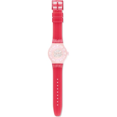 Dieses Swatch Uhrarmband ist aus kunststoff/Resin gefertigt und wird mit stahlstifte an der Uhr befestigt. Das Band hat eine Breite von 21.3 mm und wird mit einer dornschließe geschlossen. Das Uhrenarmband hat keine gerade Halterung, was bedeutet, dass dieses Band nur für die unten aufgeführten Uhren geeignet ist.