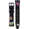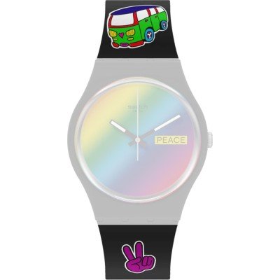 Dieses Swatch Uhrarmband ist aus silikon gefertigt und wird mit stahlstifte an der Uhr befestigt. Das Band hat eine Breite von 17 mm und wird mit einer dornschließe geschlossen. Das Uhrenarmband hat keine gerade Halterung, was bedeutet, dass dieses Band nur für die unten aufgeführten Uhren geeignet ist.