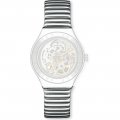Dieses Swatch Uhrarmband ist aus edelstahl gefertigt und wird mit stahlstifte an der Uhr befestigt. Das Band hat eine Breite von 17 mm. Das Uhrenarmband hat keine gerade Halterung, was bedeutet, dass dieses Band nur für die unten aufgeführten Uhren geeignet ist.