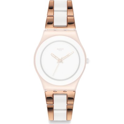 Dieses Swatch Uhrarmband ist aus edelstahl gefertigt und wird mit stahlstifte an der Uhr befestigt. Das Band hat eine Breite von 17 mm und wird mit einer schmuckschließe geschlossen. Das Uhrenarmband hat keine gerade Halterung, was bedeutet, dass dieses Band nur für die unten aufgeführten Uhren geeignet ist.