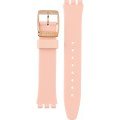 Dieses Swatch Uhrarmband ist aus silikon gefertigt und wird mit stahlstifte an der Uhr befestigt. Das Band hat eine Breite von 17 mm und wird mit einer dornschließe geschlossen. Das Uhrenarmband hat keine gerade Halterung, was bedeutet, dass dieses Band nur für die unten aufgeführten Uhren geeignet ist.