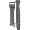 Dieses Swatch Uhrarmband ist aus leder gefertigt und wird mit stahlstifte an der Uhr befestigt. Das Band hat eine Breite von 17 mm und wird mit einer dornschließe geschlossen. Das Uhrenarmband hat keine gerade Halterung, was bedeutet, dass dieses Band nur für die unten aufgeführten Uhren geeignet ist.
