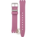 Dieses Swatch Uhrarmband ist aus silikon gefertigt und wird mit stahlstifte an der Uhr befestigt. Das Band hat eine Breite von 17 mm und wird mit einer dornschließe geschlossen. Das Uhrenarmband hat keine gerade Halterung, was bedeutet, dass dieses Band nur für die unten aufgeführten Uhren geeignet ist.