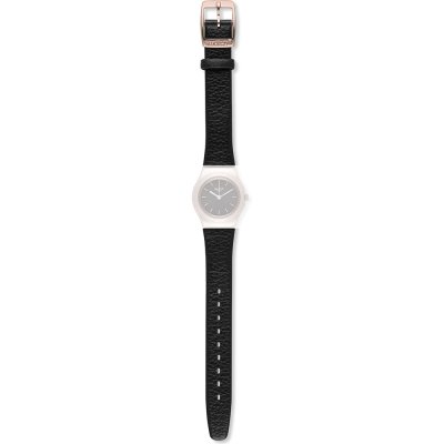 Dieses Swatch Uhrarmband ist aus leder gefertigt und wird mit stahlstifte an der Uhr befestigt. Das Band hat eine Breite von 12 mm und wird mit einer dornschließe geschlossen. Das Uhrenarmband hat keine gerade Halterung, was bedeutet, dass dieses Band nur für die unten aufgeführten Uhren geeignet ist.