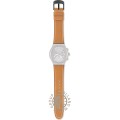 Dieses Swatch Uhrarmband ist aus leder gefertigt und wird mit stahlstifte an der Uhr befestigt. Das Band hat eine Breite von 21 mm und wird mit einer dornschließe geschlossen. Das Uhrenarmband hat keine gerade Halterung, was bedeutet, dass dieses Band nur für die unten aufgeführten Uhren geeignet ist.